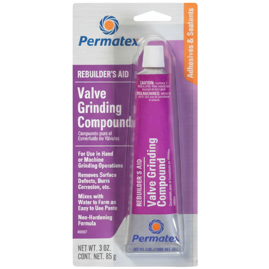 Permatex Valve Grinding Compound is a precision abrasive formulation engineered for professional valve seat finishing and lapping operations. This 3oz container delivers consistent cutting action to achieve optimal valve-to-seat contact surfaces on automotive engines. The compound's carefully balanced grit composition removes minor imperfections and corrosion while promoting proper sealing geometry. Ideal for both restoration work and performance engine builds, it ensures reliable combustion chamber integrity and reduces blow-by. Apply with a valve lapping tool for superior results on intake and exhaust valves.